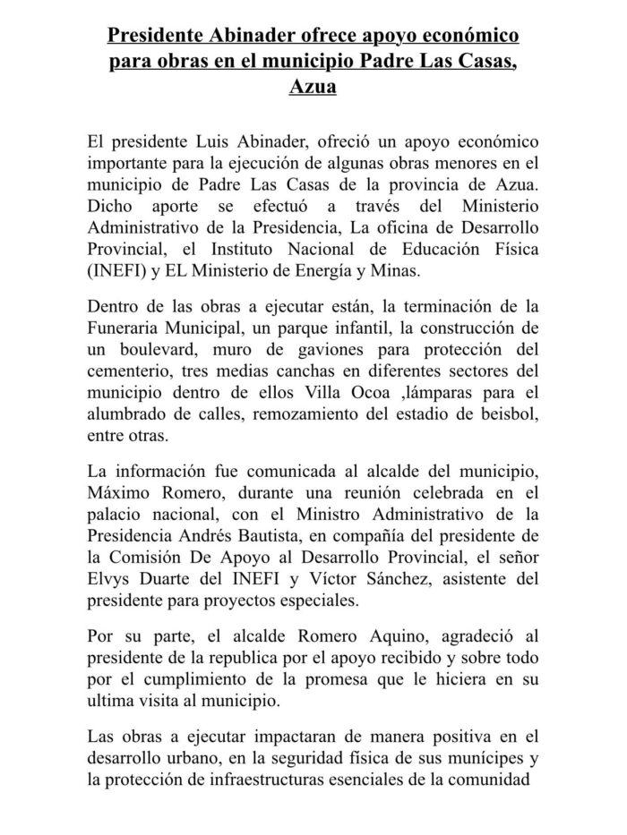 Nos complace anunciar que la construcción de la Funeraria Municipal ya es un hecho. Este importante logro ha sido posible gracias al apoyo del Presidente de la República, Luis Abinader Corona, y a las incansables gestiones de nuestro alcalde Máximo Romero.