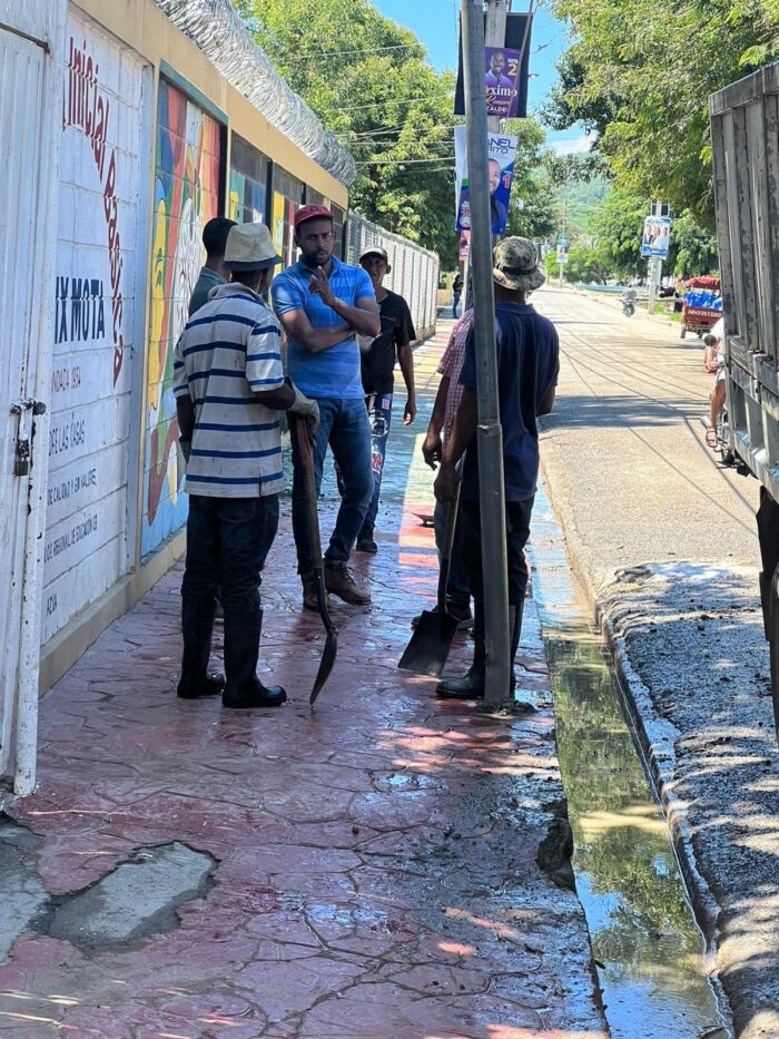 El alcalde Máximo Romero y un equipo de la alcaldía supervisan los trabajos para garantizar que los mismos, se realicen con la calidad requerida en aras de llevarle soluciones a los que a diario utilizan vías como la calle Duarte.